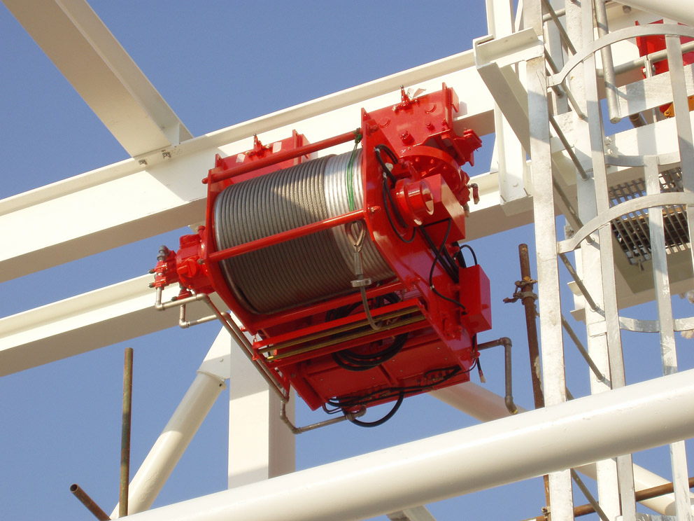 特征:這里使用的起吊葫蘆里并列配置了2臺氣動馬達和2臺滾筒,因為1臺泵用2根繩索來同步卷上卷下,因此有極高的安全性,即使有1根繩索斷裂,也不會導致泵落下。