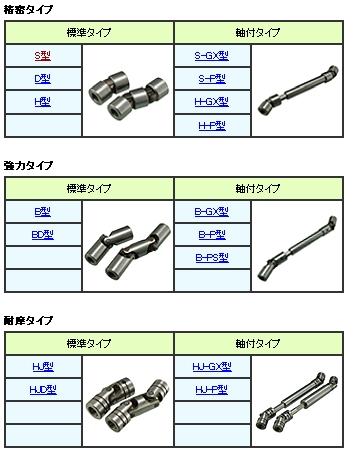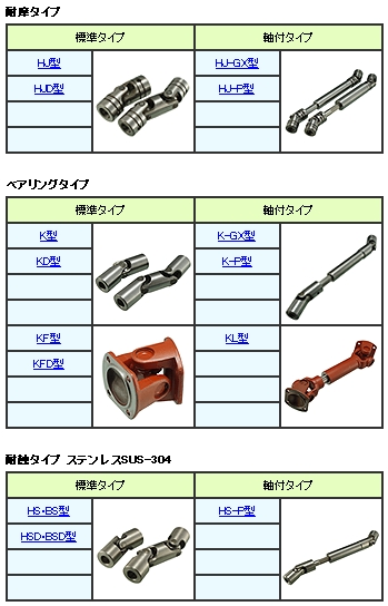 Miyoshi株式會社: Miyoshi三好萬向聯軸器 S,M,KG等系列型號,廣泛應用于印刷,造紙,鋼鐵,冶金等行業。精密タイプ 標準タイプ 軸付タイプ S型 S-GX型 D型 S-P型 H型 H-GX型 H-P型 強力タイプ 標準タイプ 軸付タイプ B型 B-GX型 BD型 B-P型 B-PS型 耐摩タイプ 標準タイプ 軸付タイプ HJ型 HJ-GX型 HJD型 HJ-P型ベアリングタイプ 標準タイプ 軸付タイプ K型 K-GX型 KD型 K-P型 KF型 KL型 KFD型 耐蝕タイプ ステンレスSUS-304 標準タイプ 軸付タイプ HS?BS型 HS-P型 HSD?BSD型ミニチュアタイプ 標準タイプ 軸付タイプ MS型 MS-L型 M型 M-L型 (2.0~4.5)M-L型 (5.0~5.5) MAA型 MAB型 MAC型 MAD型 MBB型 MBC型 MBD型 MCC型 MCD型 MDD型 非磁耐蝕タイプ ブロンズBC-6 標準タイプ BR型 ホビータイプ 標準タイプ R型 給油メンテナンス ジョイントブーツ オイルパック S型 オイルパック D型 B型?H型 BD型 HJ型