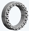 These external clamping devices fit on the hub projection of the component and elastically compress the hub onto the shaft to transmit torque. Designed to be utilized as a single or in a split configuration, these devices transmit high torque. Common types include light duty, medium duty and heavy duty devices like 4051, the new 4061, 4071, 4091 and two piece units such as 4151, 4161, 4171 and 4191 from sizes 13mm to 1000mm bore.
