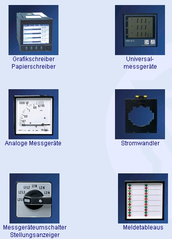 Graphic writers Paper writers Multifunctional meters Digital panel meters Counters Analogue panel meters Current transformers Transducers Shunts Switches LED indicator panels Accessories