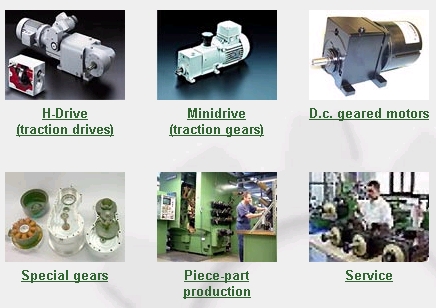 H-Drive (traction drives) Minidrive (traction gears) D.c. geared motors Compact geared motors Special gears Piece-part production Service Agitators
