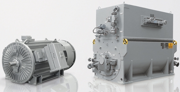Loher motors in Ex p(x) The motors are certified according to the latest standard EN 60079 in the highest level px. An explosive atmosphere is prevented from entering the motor by an inert gas that is kept at a specific pressure inside the motor. The mounted control device controls the purging process. In this operation gas with several times the volume of the motor is passed through the motor before it is started. In subsequent normal operation, the control device monitors the slight overpressure in the motor and regulates any losses due to leakage and the flow of the inert gas. All of the functions are parameterized, tested and documented in the factory. The pressurized enclosure permits safe and reliable operation in Zone 1 for the widest range of cooling types - even in the upper power range. Power range: Vario series: 80 to 2150 kW J series: 355 to 10000 kW