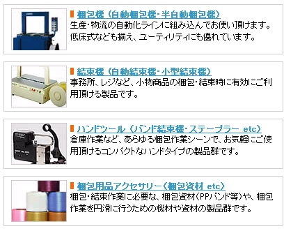 SPOT PRODUCTS|梱包機(jī)製品リスト|結(jié)束機(jī)製品リスト|ハンドツール製品リスト|梱包用品アクセサリーリスト|ALL PRODUCTS 標(biāo)準(zhǔn)型全自動(dòng)梱包機(jī) 省?????型自動(dòng)梱包機(jī) 標(biāo)準(zhǔn)型?????全自動(dòng)梱包機(jī) 小型全自動(dòng)梱包機(jī) 全自動(dòng)梱包機(jī)(細(xì)物用) 低床型全自動(dòng)梱包機(jī) 段????用自動(dòng)梱包機(jī) 水産型全自動(dòng)梱包機(jī) 小型全自動(dòng)梱包機(jī) ?-?開閉式全自動(dòng)梱包機(jī) ステンレス製半自動(dòng)梱包機(jī) 半自動(dòng)梱包機(jī)(細(xì)物用) 半自動(dòng)梱包機(jī) 半自動(dòng)梱包機(jī) 低床型半自動(dòng)梱包機(jī) 標(biāo)準(zhǔn)型全自動(dòng)梱包機(jī) 小型全自動(dòng)梱包機(jī) 半自動(dòng)梱包機(jī)(小型用)
