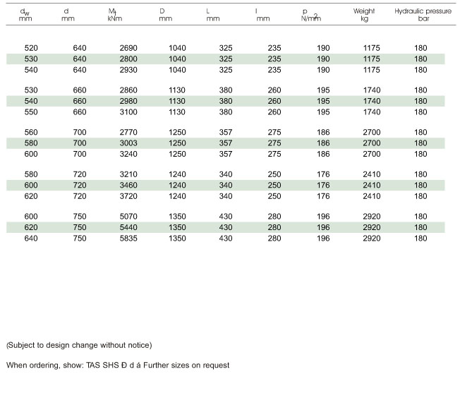 TAS液壓縮緊盤 TYPE:SHS 型號規格 上一頁