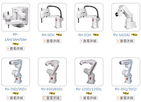三菱電機(jī)工業(yè)機(jī)器人分為垂直多關(guān)節(jié)型,水平多關(guān)節(jié)型及精密型,具體型號(hào)有RP-1AH/3AH/5AH RH-SDH RH-SQH RV-1A/2AJ RV-3SD/3SDJ RV-6SD/6SDL RV-12SD/12SDL RV-3SQ/3SQJ RV-1A/2AJ RV-3SD/3SDJ RV-6SD/6SDL RV-12SD/12SDL RV-3SQ/3SQJ RV-6SQ/6SQL RV-12SQ/12SQL RH-SDH RH-SQH RP-1AH/3AH/5AH
