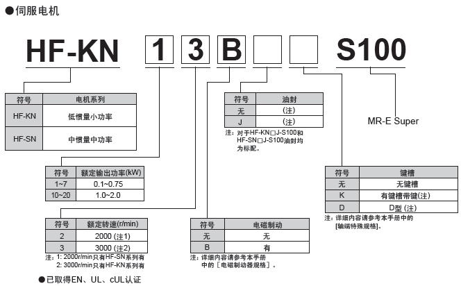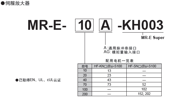 三菱伺服放大器MR-E型號表示及對應伺服電機