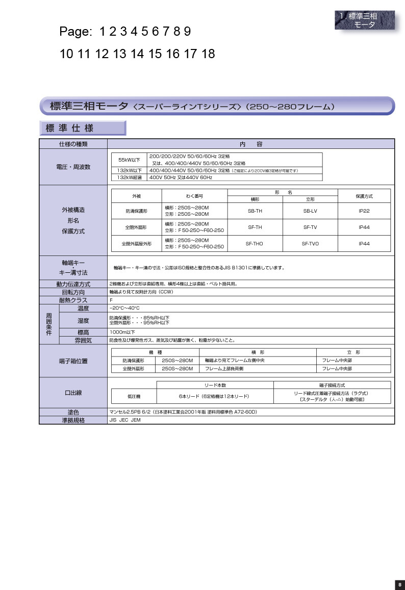 標(biāo)準(zhǔn)三相電機(jī)基本參數(shù)250-280 SB-TH SF-TH SF-THO SB-LV SF-TV SF-TVO