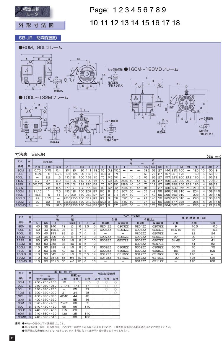 防滴保護(hù)型SB-JR外型尺寸圖 機(jī)座號(hào) 80M,90L,100L-132M