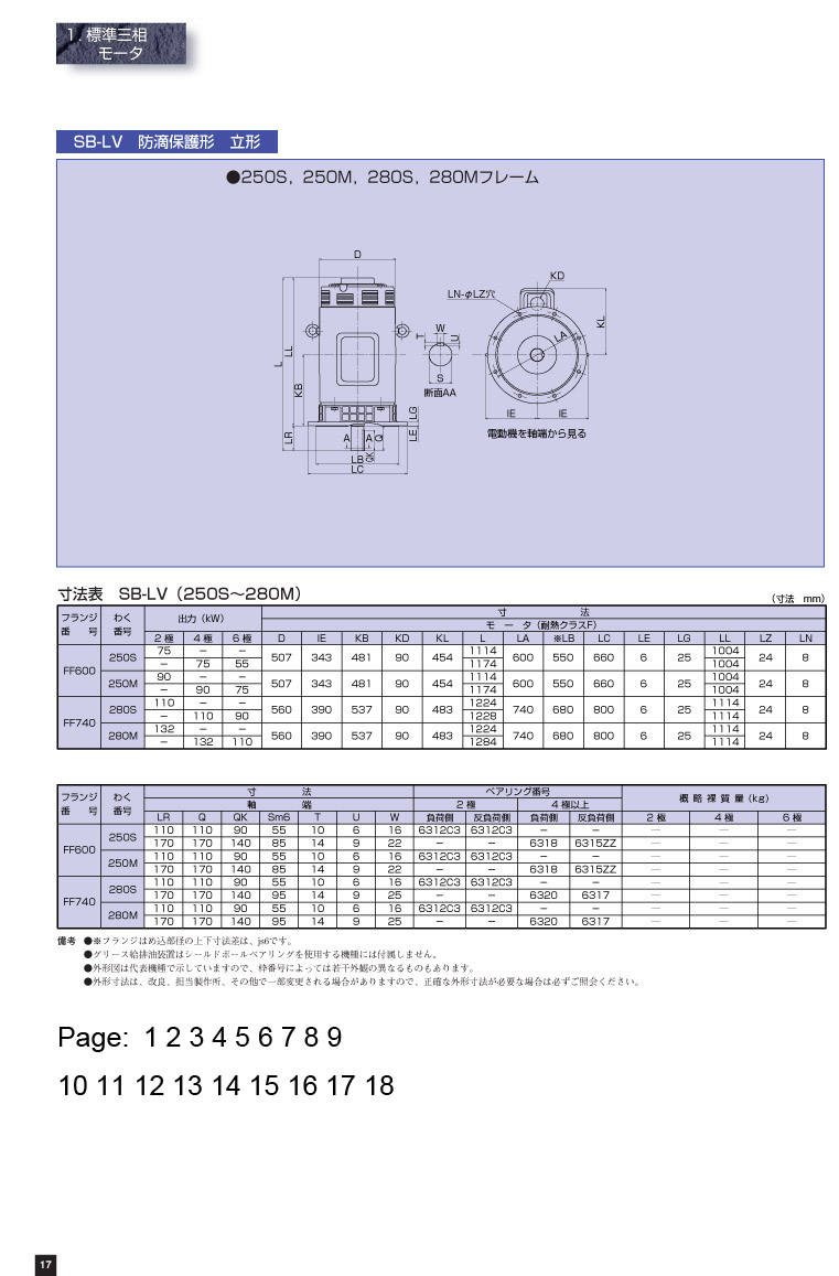 防滴保護(hù)型立形SB-LV外型尺寸圖 機(jī)座號(hào) 250S 250M 280S 280M