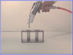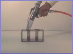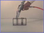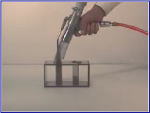 把氣動吸塵槍的噴射管嘴插入容器的深孔里面。